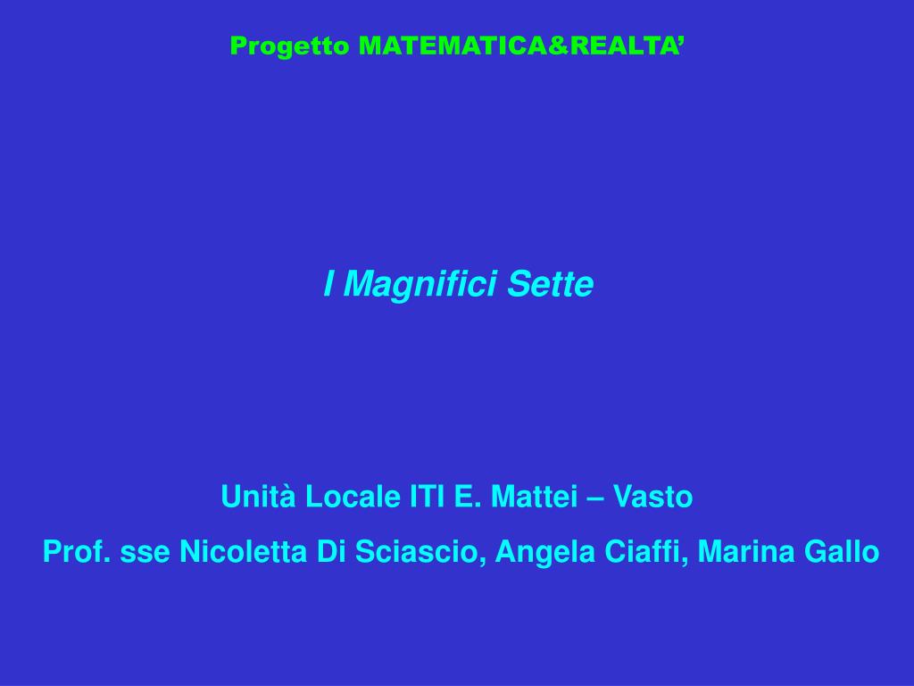 Progetto MATEMATICA&REALTA’ I Magnifici Sette Unità Locale ITI E. Mattei – Vasto Prof. sse Nicoletta Di Sciascio, Angela Ciaffi, Marina Gallo