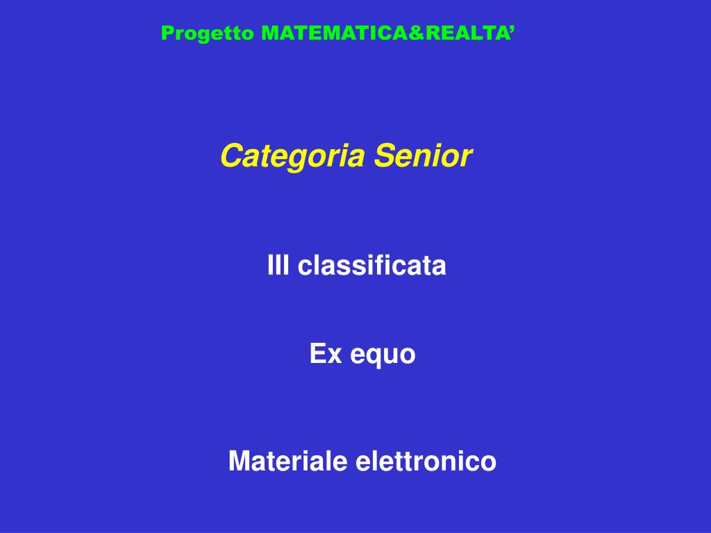 Progetto MATEMATICA&REALTA’ Categoria Senior I classificata Materiale elettronico