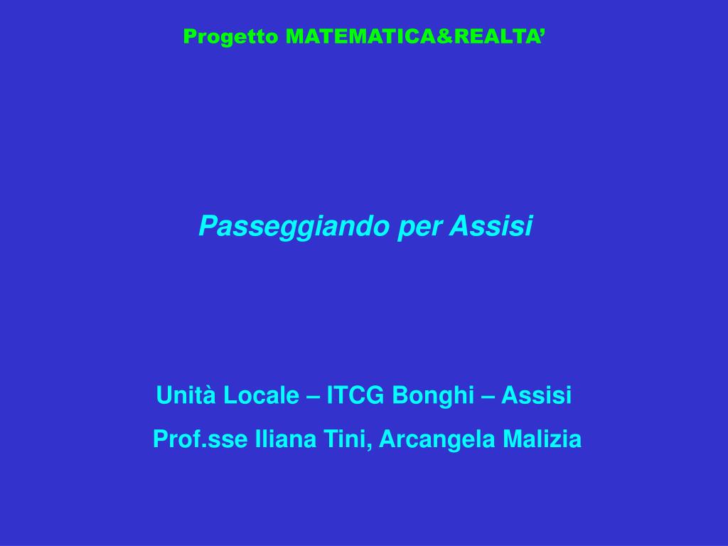 Progetto MATEMATICA&REALTA’ Passeggiando per Assisi Unità Locale – ITCG Bonghi – Assisi Prof.sse Iliana Tini, Arcangela Malizia