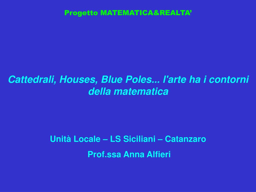 Progetto MATEMATICA&REALTA’ Cattedrali, Houses, Blue Poles... l'arte ha i contorni della matematica Unità Locale – LS Siciliani – Catanzaro Prof.ssa Anna Alfieri