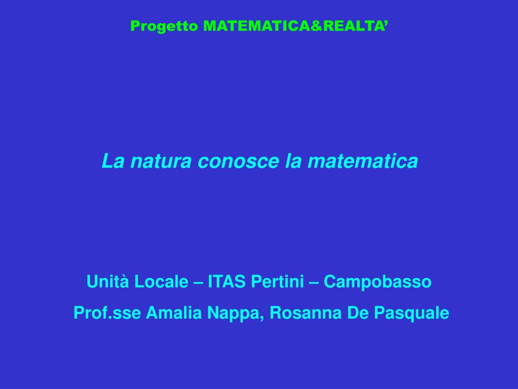 Progetto MATEMATICA&REALTA’ La natura conosce la matematica Unità Locale – ITAS Pertini – Campobasso Prof.sse Amalia Nappa, Rosanna De Pasquale