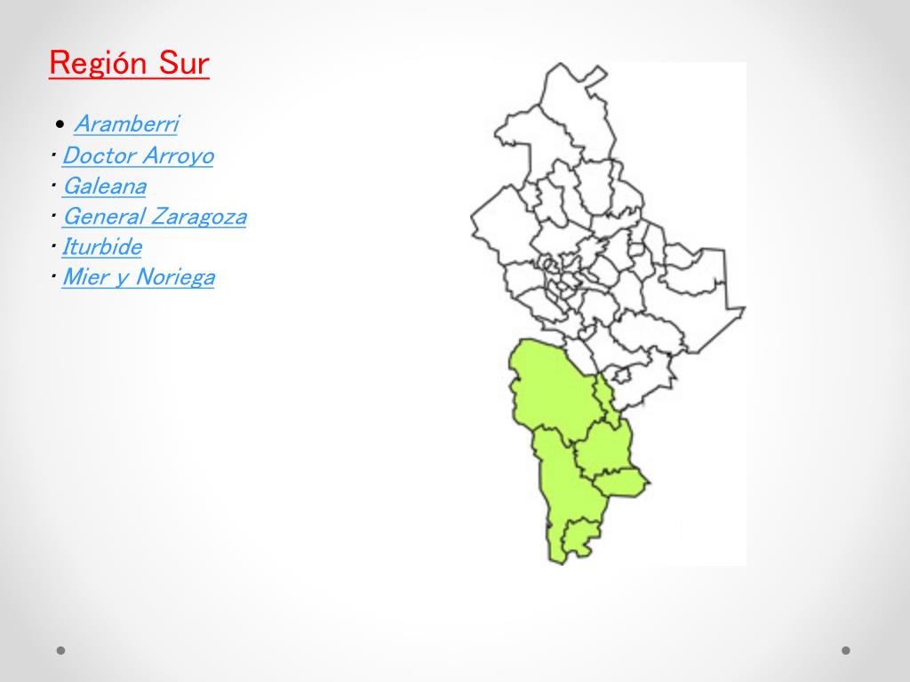 Región Sur •Aramberri• Doctor Arroyo• Galeana• General Zaragoza• Iturbide• Mier y Noriega