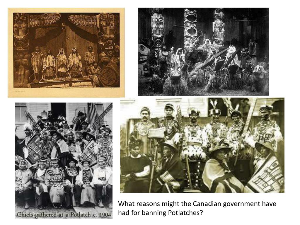 The Potlatch • The Potlatch and ritual dancing were part of the Northwestern Coastal people’s traditions. • The word comes from the Chinook dialect, meaning "to give away" or "a gift". • The Potlatch was a ceremony where gifts were given as payments to those who witness a ceremony, such as a wedding. They were also used to redistribute wealth and demonstrate reciprocity of wealth. • Within the potlatch, hierarchical relations within and between clans, villages, and nations, are observed and reinforced through the distribution or sometimes destruction of wealth, dance performances, and other ceremonies. • The status of any given family is raised not by who has the most resources, but by who distributes the most resources. The hosts demonstrate their wealth and prominence through giving away goods.