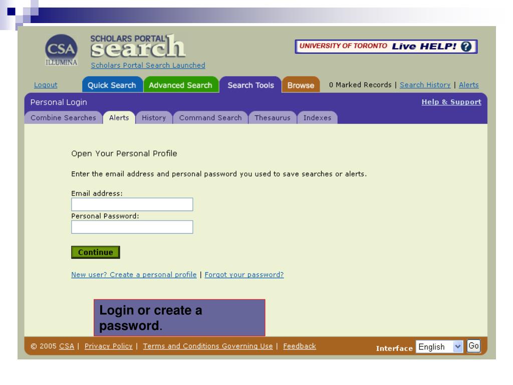 Scifinder access • available as web version and client-server • web version works off and on campus • register individually from a computer with a valid U of T IP address via the Scifinder Scholar registration page • must use a utoronto.ca email address to register • log on from any PC but connect via the UofT Library site • Access between 11 am and 6pm may be difficult since only 6 seats are available concurrently • try again in 5 minutes or use Scifinder in the evening instead