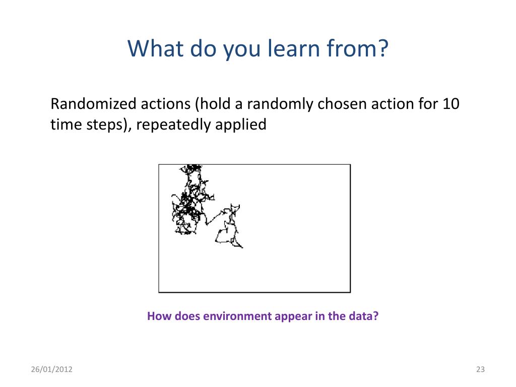 What do you learn from? Randomized actions (hold a randomly chosen action for 10 time steps), repeatedly applied How does environment appear in the data?