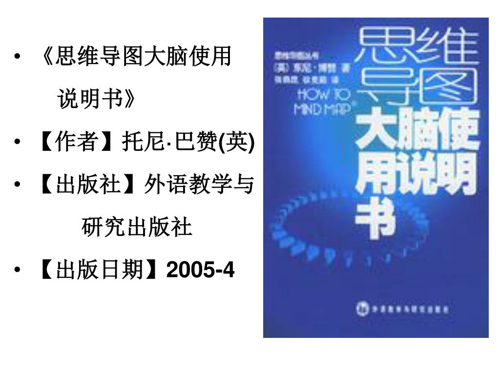 《思维导图大脑使用 说明书》 • 【作者】托尼·巴赞(英) • 【出版社】外语教学与 研究出版社 • 【出版日期】2005-4