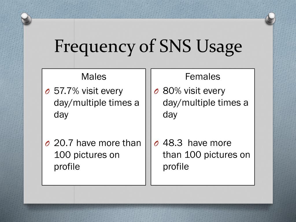Males are members of about 2.27 SNS Females are members of about 3.37 SNS