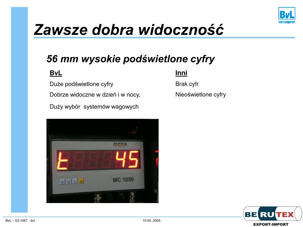 Zawsze dobra widoczność 56 mm wysokie podświetlone cyfry Inni Brak cyfr Nieoświetlone cyfry BvL Duże podświetlone cyfry Dobrze widoczne w dzień i w nocy, Duży wybór systemów wagowych