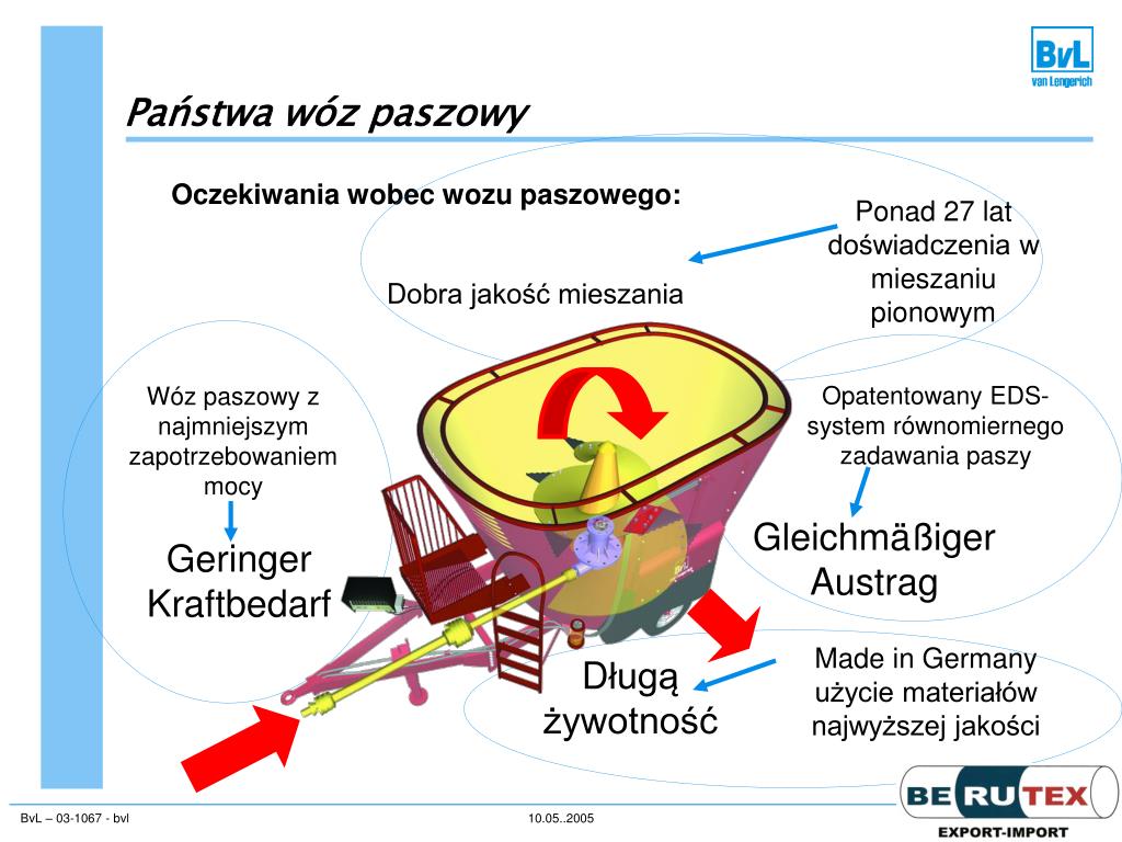 Ul. Opolska 30 55-011 Siechnice Tel. 071-311-3888 Fax 071-311-5806 www.berutex.com berutex@onet.pl. BvL van Lengerich od 1860. Wóz do mieszania od 1978 roku ( Najstarszy i najbardziej doświadczony producent wertykalnych (pionowych) wozów paszowych w Europie). BvL van Lengerich