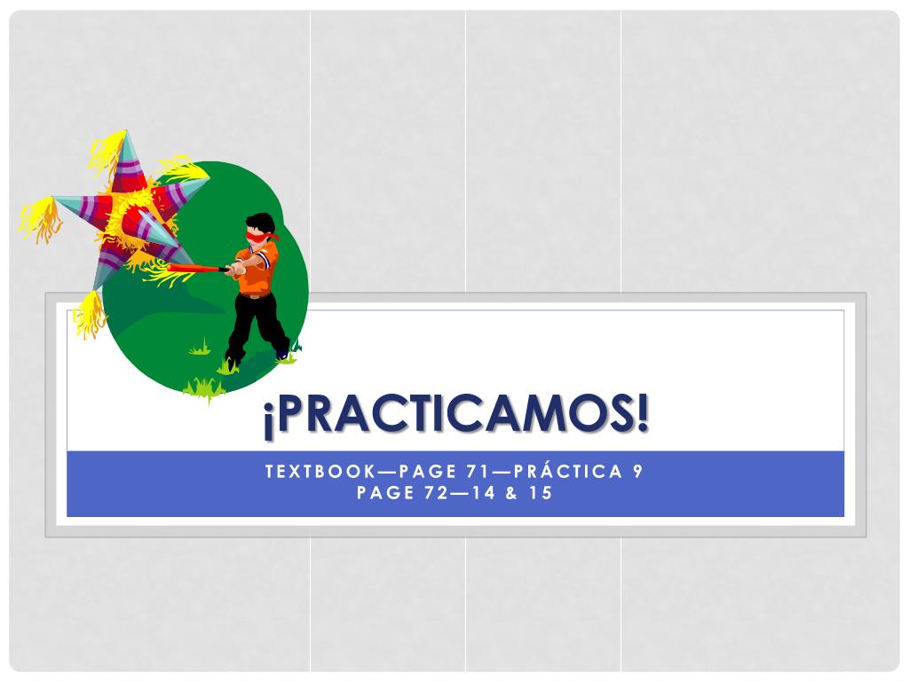 ¡Practicamos! Textbook—page 71—prÁctica 9 Page 72—14 & 15