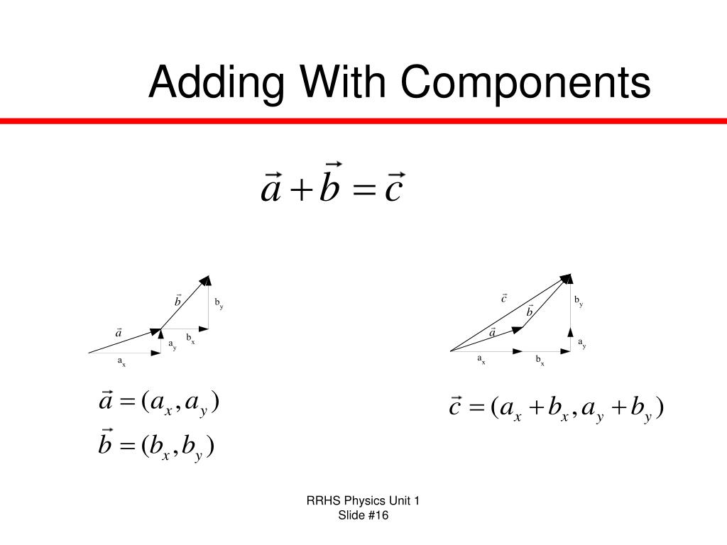 Vector Addition Diagram • Must draw vectors being added head to tail • Resultant (c) goes from tail of • first vector to head of second vector