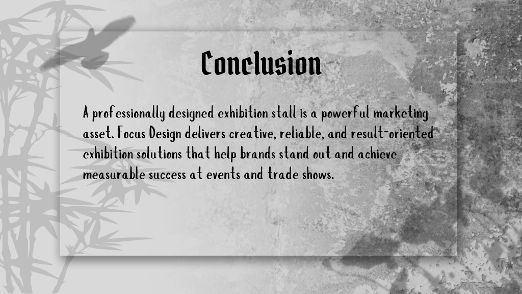 7. Conclusion A professionally designed exhibition stall is a powerful marketing asset. Focus Design delivers creative, reliable, and result-oriented exhibition solutions that help brands stand out and achieve measurable success at events and trade shows.