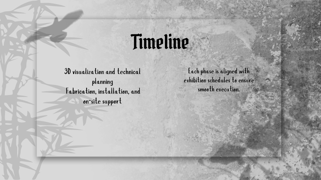 5. Timeline Each phase is aligned with exhibition schedules to ensure smooth execution. 3D visualization and technical planning Fabrication, installation, and on-site support