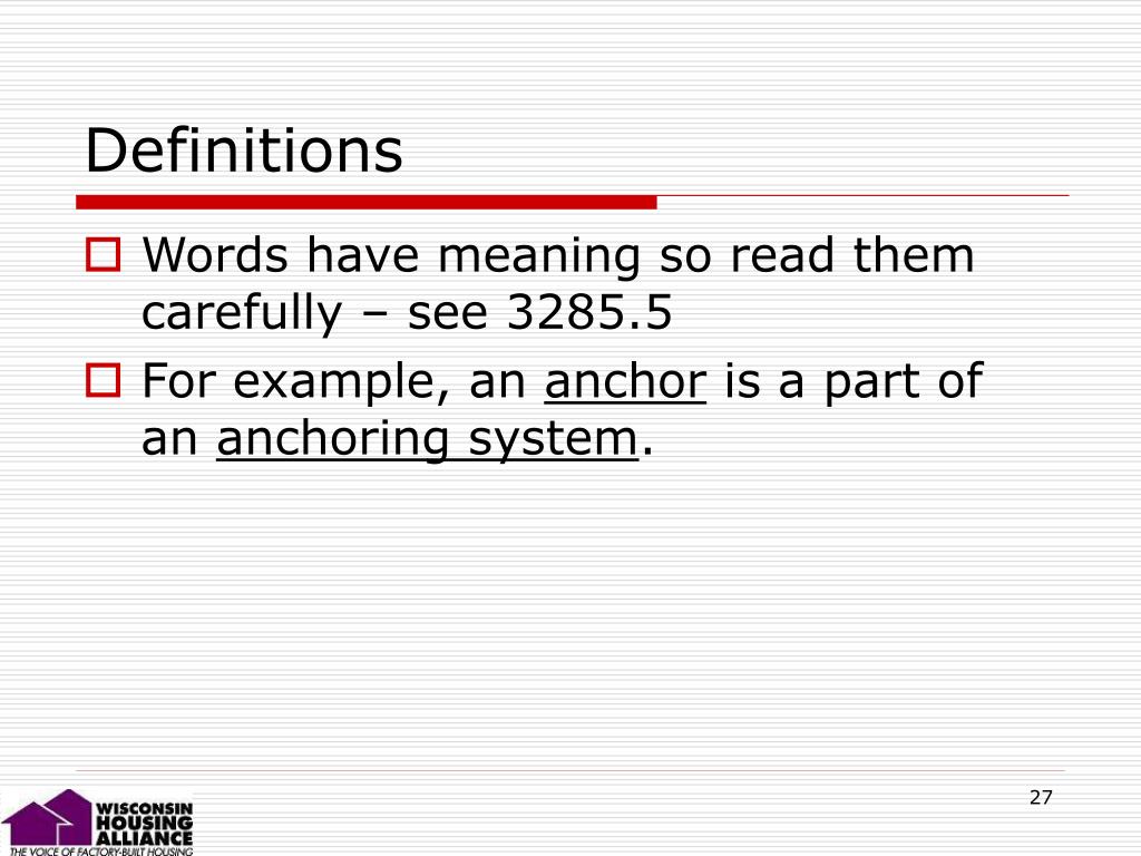 Definitions • Words have meaning so read them carefully – see 3285.5 • For example, an anchor is a part of an anchoring system.