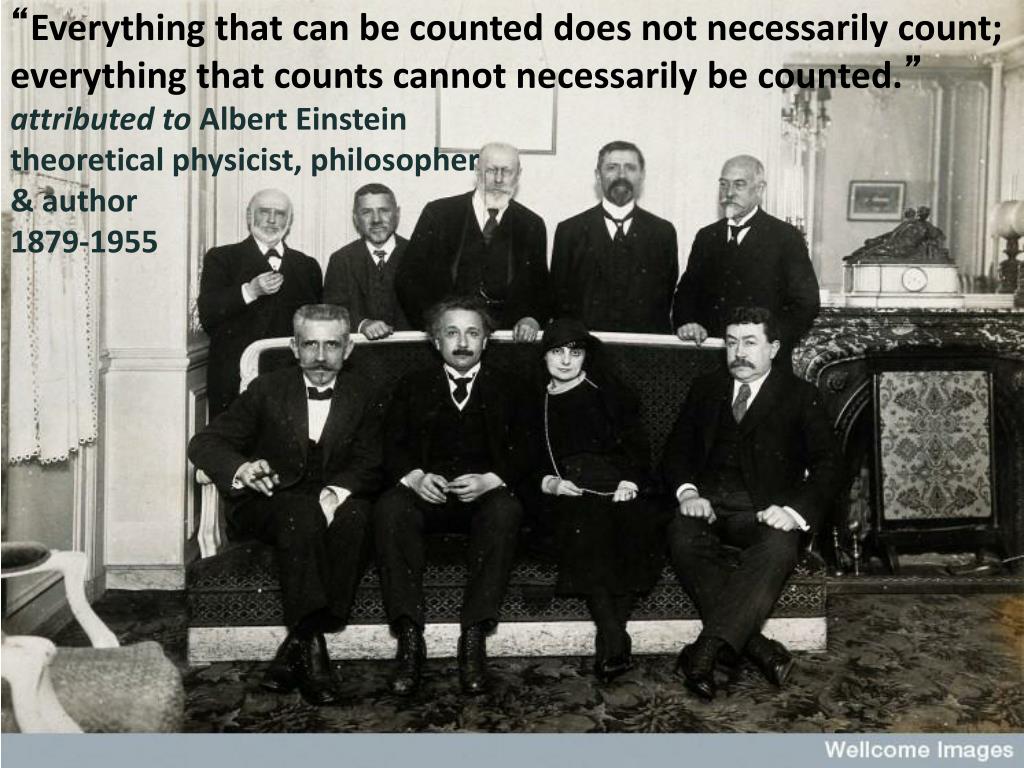 “Everything that can be counted does not necessarily count; everything that counts cannot necessarily be counted.”attributed to Albert Einsteintheoretical physicist, philosopher & author 1879-1955