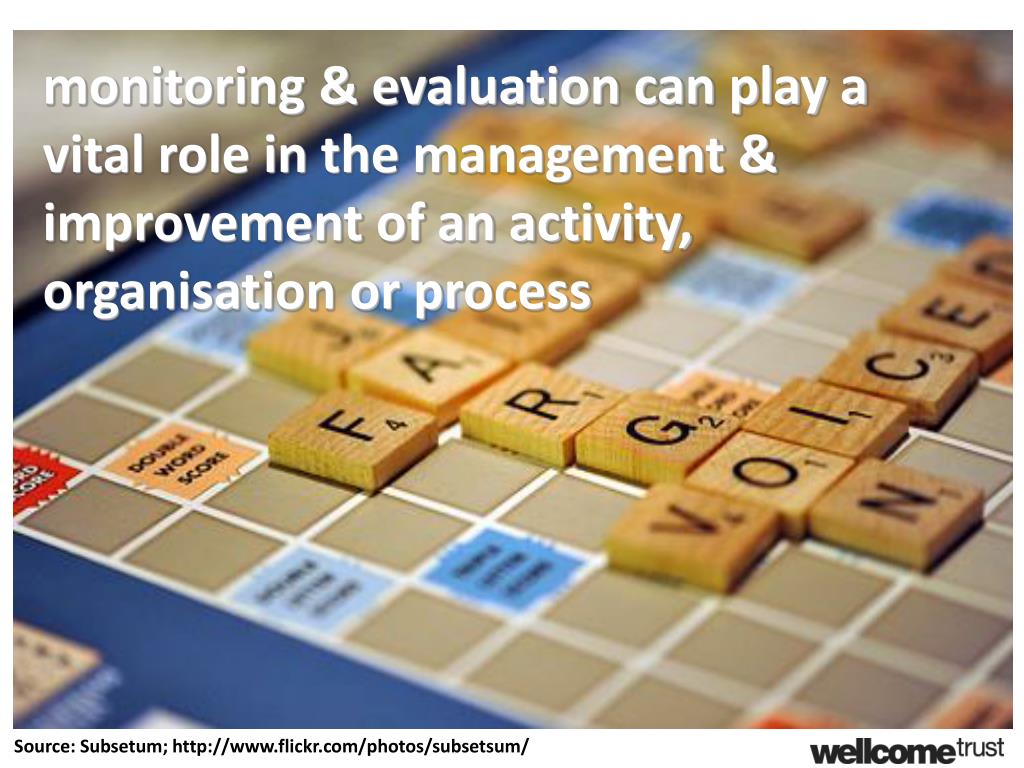 monitoring & evaluation can play a vital role in the management & improvement of an activity, organisation or process Source: Subsetum; http://www.flickr.com/photos/subsetsum/