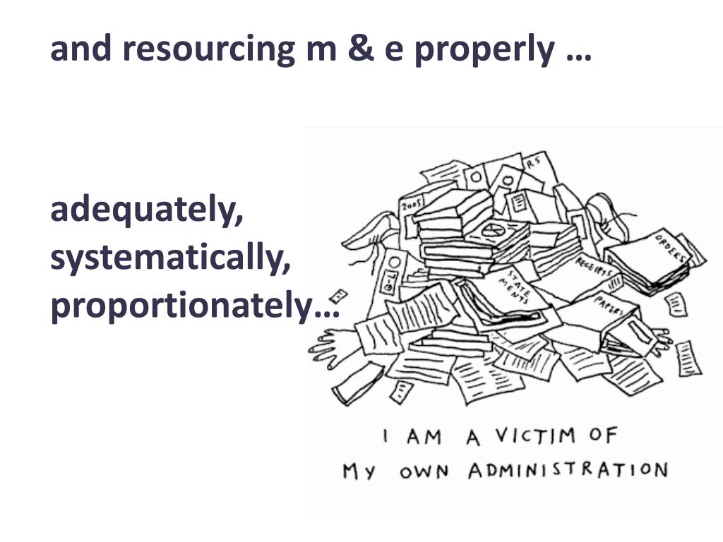 and resourcing m & e properly … adequately, systematically, proportionately…