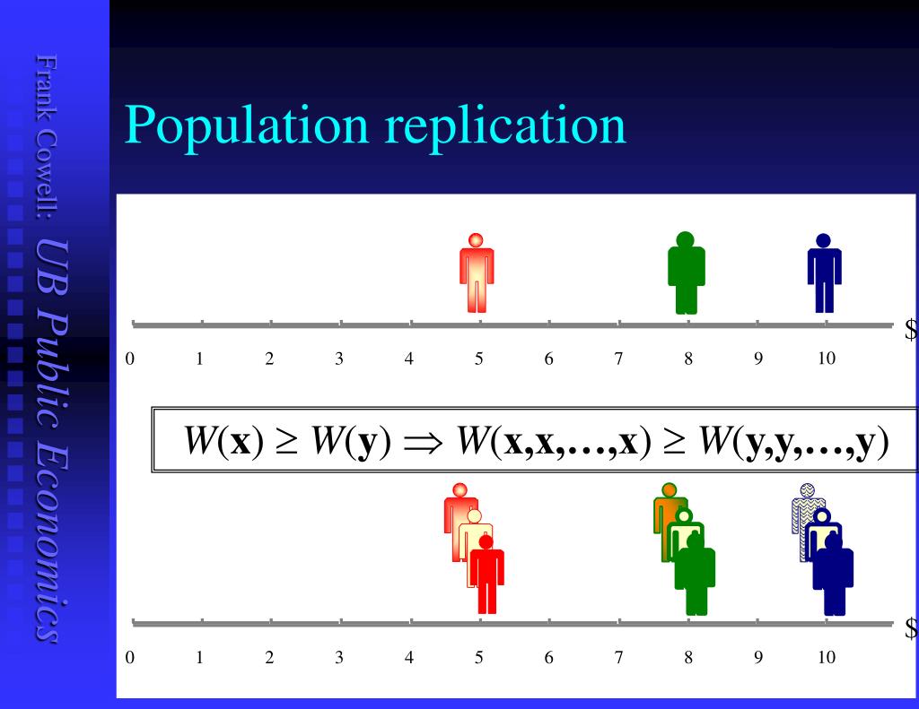 A change of notation? • Using the first two axioms • Anonymity • Population principle • We can write welfare using F –form • Just use information about distribution • Sometimes useful for descriptive purposes • Remaining axioms can be expressed in either form
