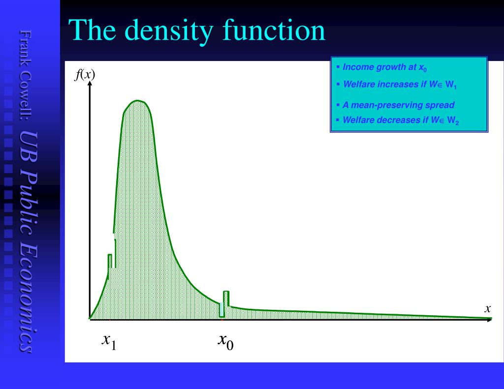 x x x 1 0 0 The density function • Income growth at x0 f(x) • Welfare increases if WÎ W1 • A mean-preserving spread • Welfare decreases if WÎ W2 x
