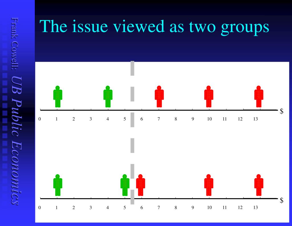 Onwards from welfare economics... • We’ve seen the welfare-economics basis for redistribution as a public-policy objective • How to assess the impact and effectiveness of such policy? • We need appropriate criteria for comparing distributions of income and personal welfare • This requires a treatment of issues in distributional analysis.