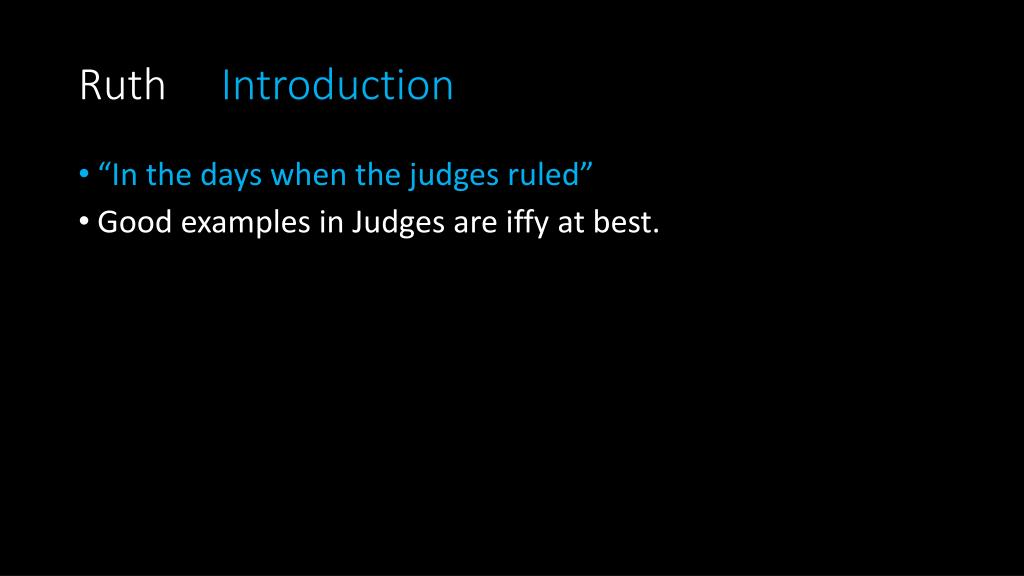 Ruth Introduction • “In the days when the judges ruled” • Good examples in Judges are iffy at best.