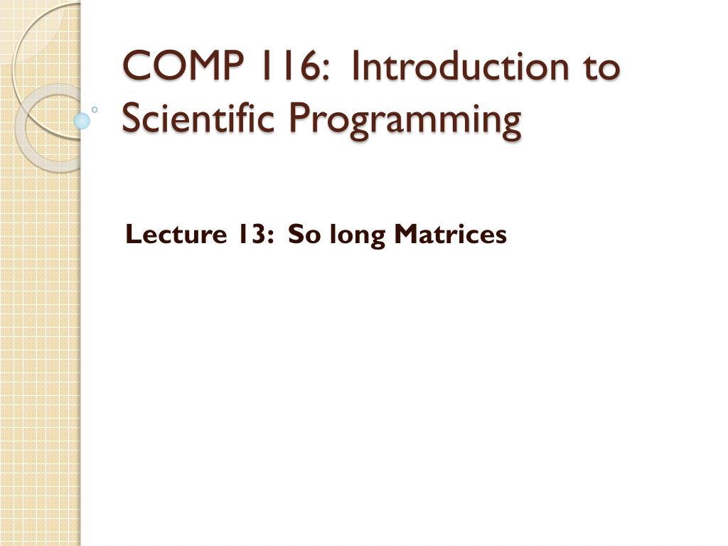 COMP 116: Introduction to Scientific Programming Lecture 13: So long Matrices