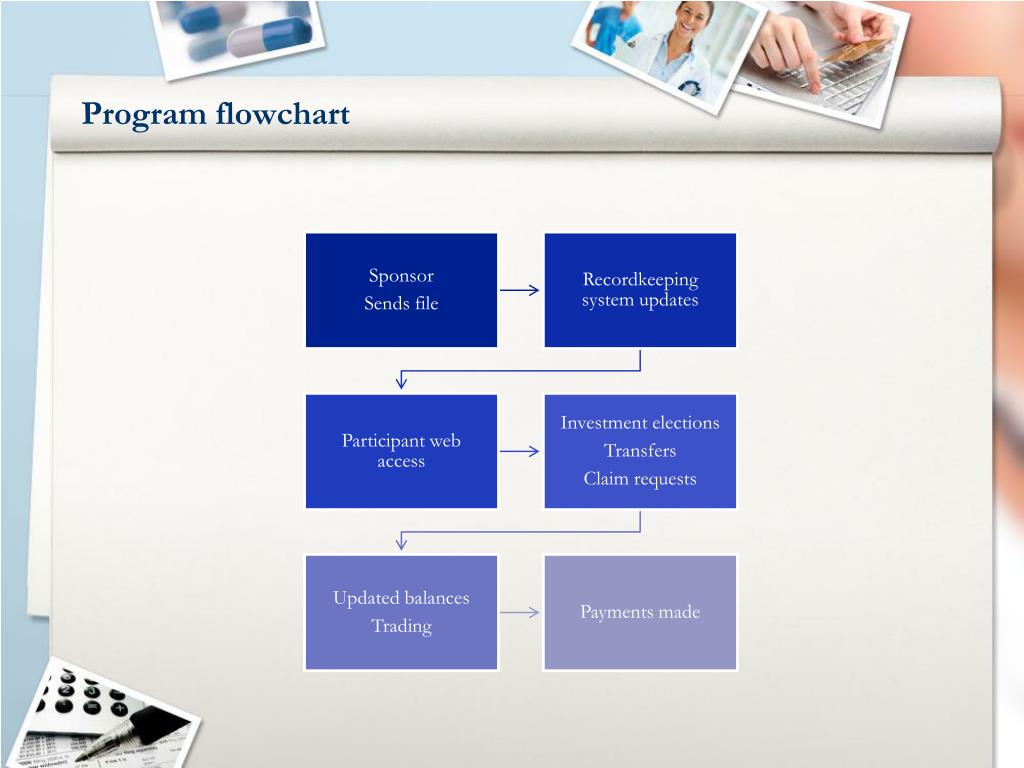 The big picture – How does the program work? BPAS Flex Corp Employer Participants 24 hour web access Incoming data files Quarterly statements Contribution funds BPA 24 hour web access Online claims submission Daily interaction with service team Claims payments HB&T Mutual fund Families