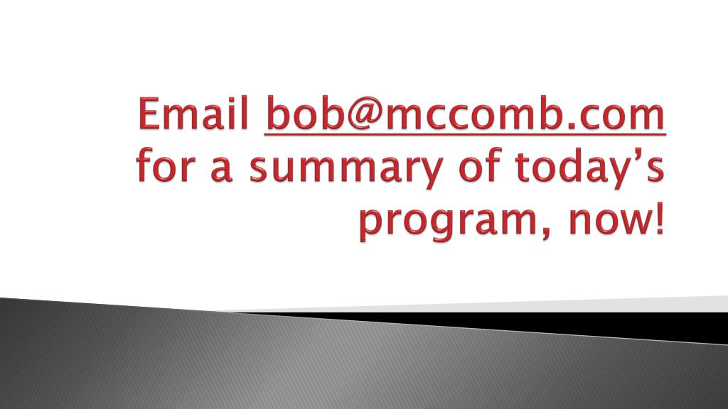 Taking Your Commercial Team to the Next Level . Bob McComb Top Dogs . Bob McComb. Top Dogs Commercial Training. Please complete an evaluation form found in the back of your program guide. How to Take Your C.R.E. Business to the Next Level !.