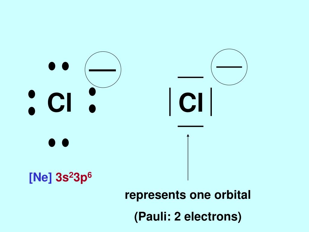 Cl Cl [Ne] 3s23p6 represents one orbital (Pauli: 2 electrons)