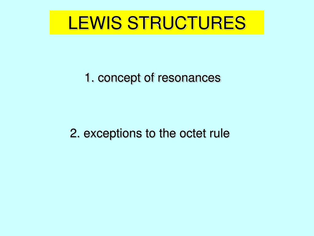 LEWIS STRUCTURES 1. concept of resonances 2. exceptions to the octet rule