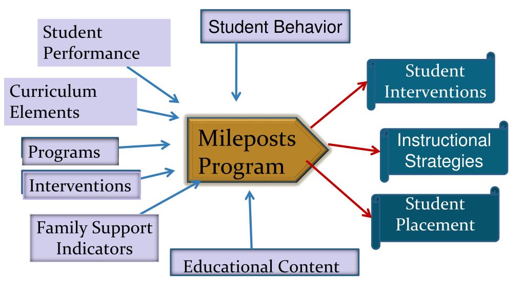 Student Behavior Student Performance Student Interventions Curriculum Elements Mileposts Program Instructional Strategies Programs Interventions Student Placement Family Support Indicators Educational Content