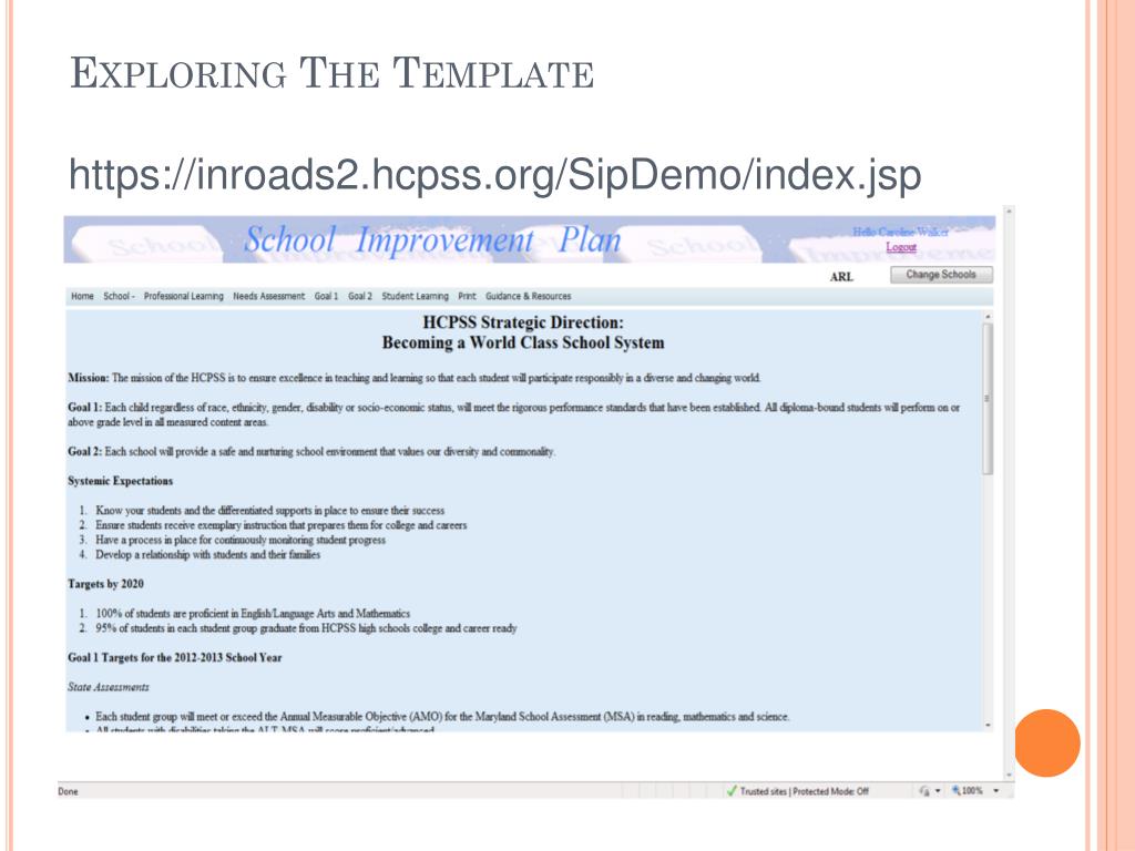 Exploring The Templatehttps://inroads2.hcpss.org/SipDemo/index.jsp