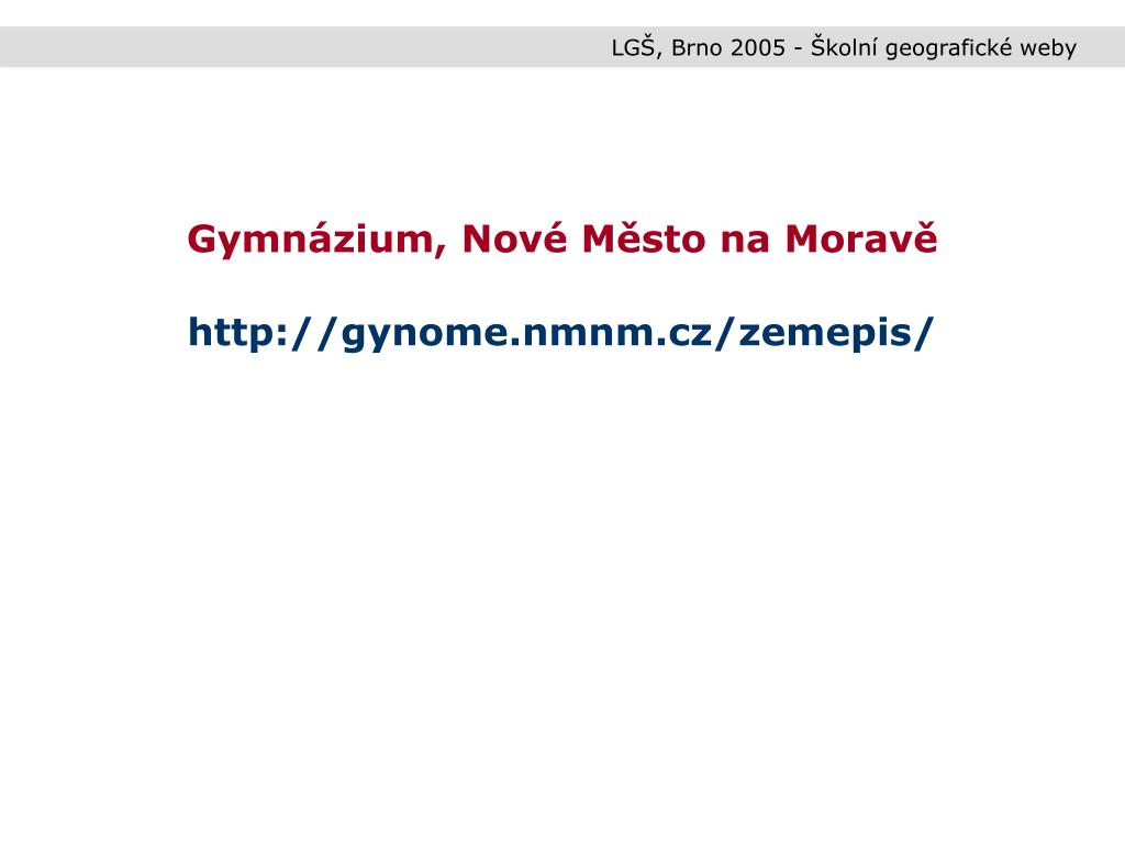 LGŠ, Brno 2005 - Školní geografické weby Gymnázium, Nové Město na Moravě http://gynome.nmnm.cz/zemepis/