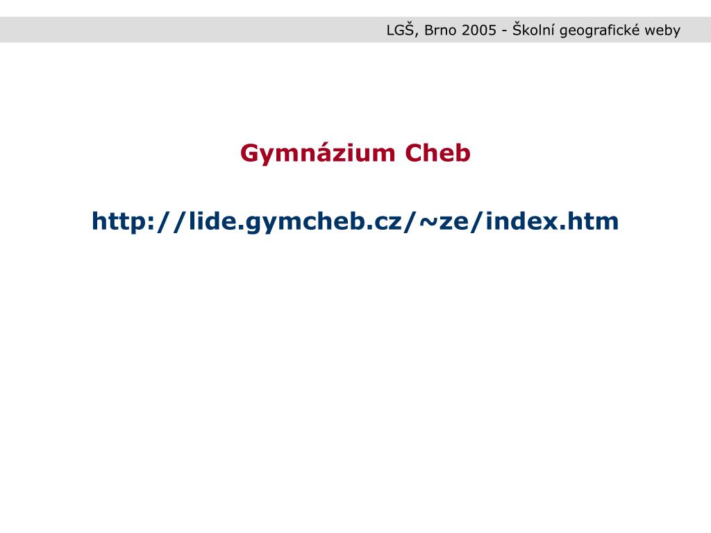 LGŠ, Brno 2005 - Školní geografické weby Gymnázium Cheb http://lide.gymcheb.cz/~ze/index.htm