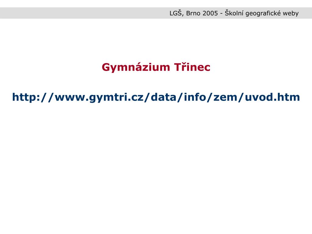 LGŠ, Brno 2005 - Školní geografické weby Gymnázium Třinec http://www.gymtri.cz/data/info/zem/uvod.htm