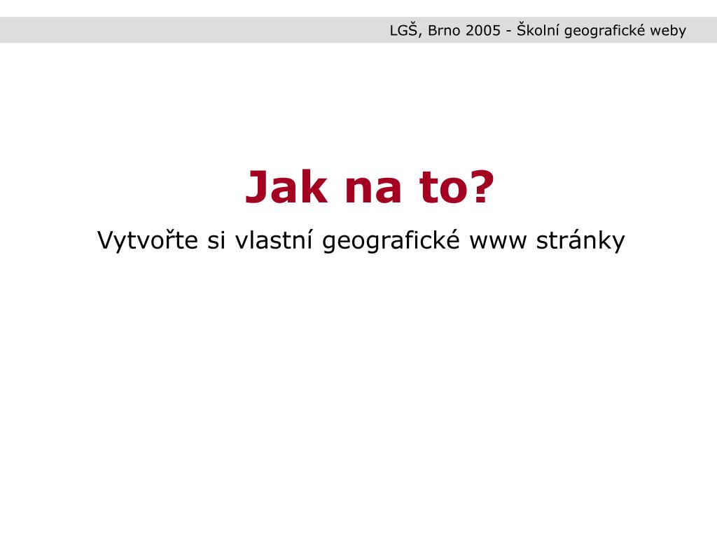 LGŠ, Brno 2005 - Školní geografické weby Jak na to? Vytvořte si vlastní geografické www stránky