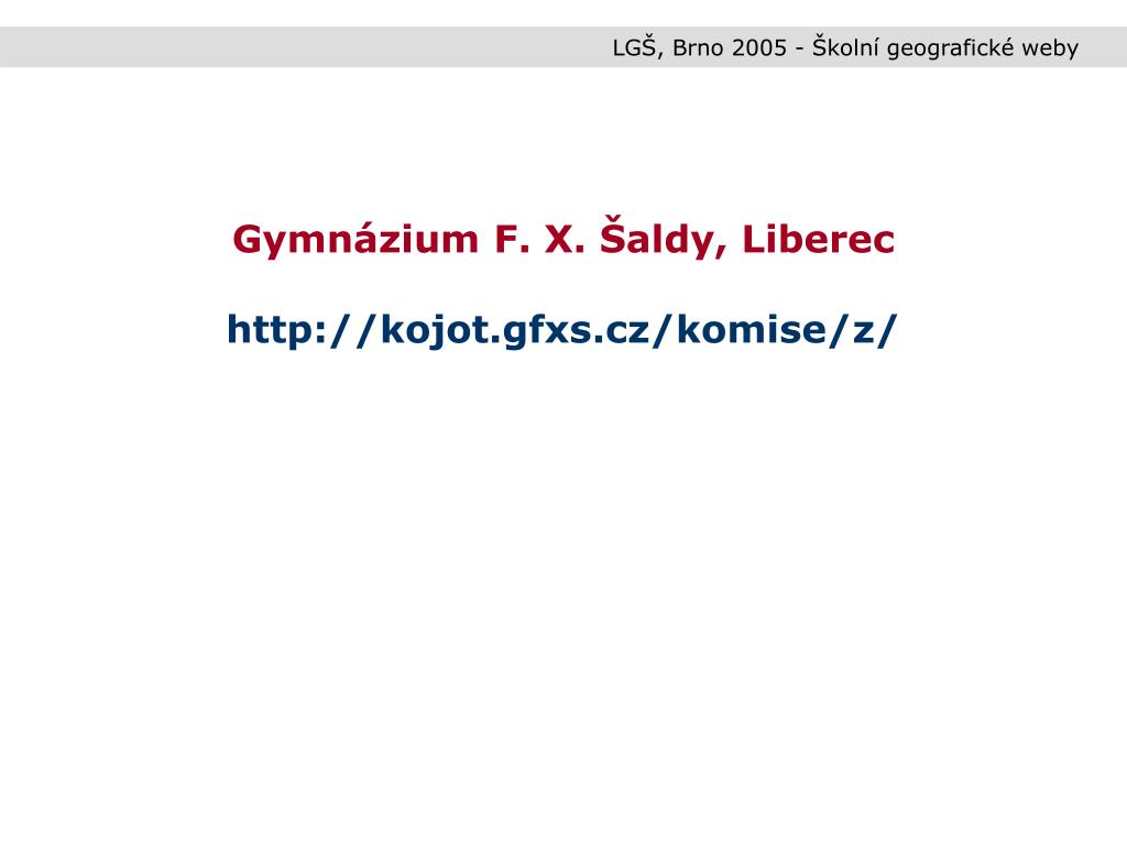 LGŠ, Brno 2005 - Školní geografické weby Gymnázium F. X. Šaldy, Liberec http://kojot.gfxs.cz/komise/z/