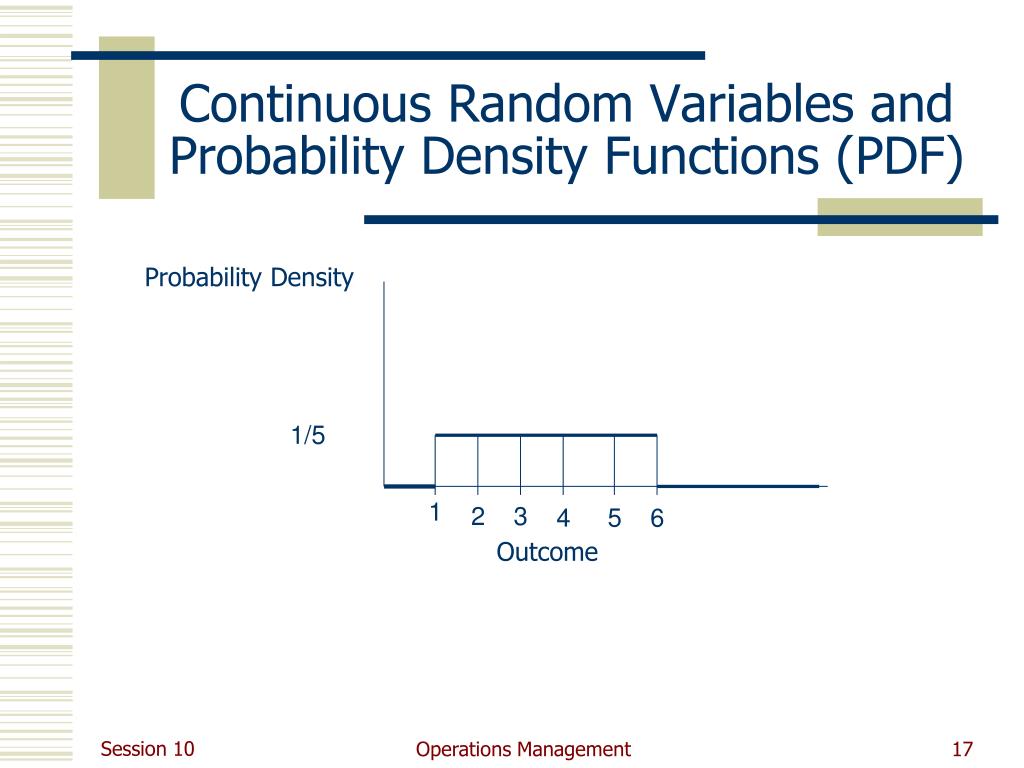Continuous Random Variables and Probability Density Functions (PDF) Probability Density 1/5 1 2 3 4 5 6 Outcome Operations Management