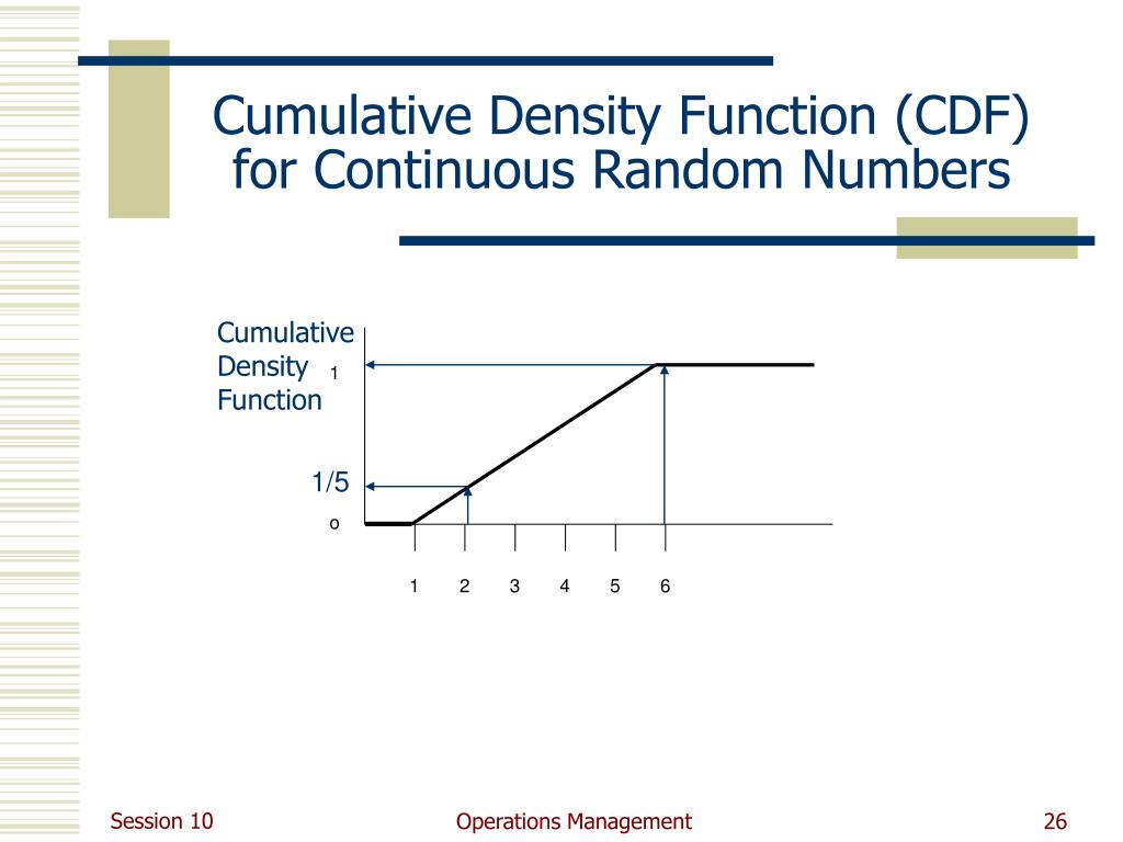 Cumulative Density Function (CDF) for Continuous Random Numbers Cumulative Density Function 1 1/5 o 1 2 3 4 5 6 Operations Management