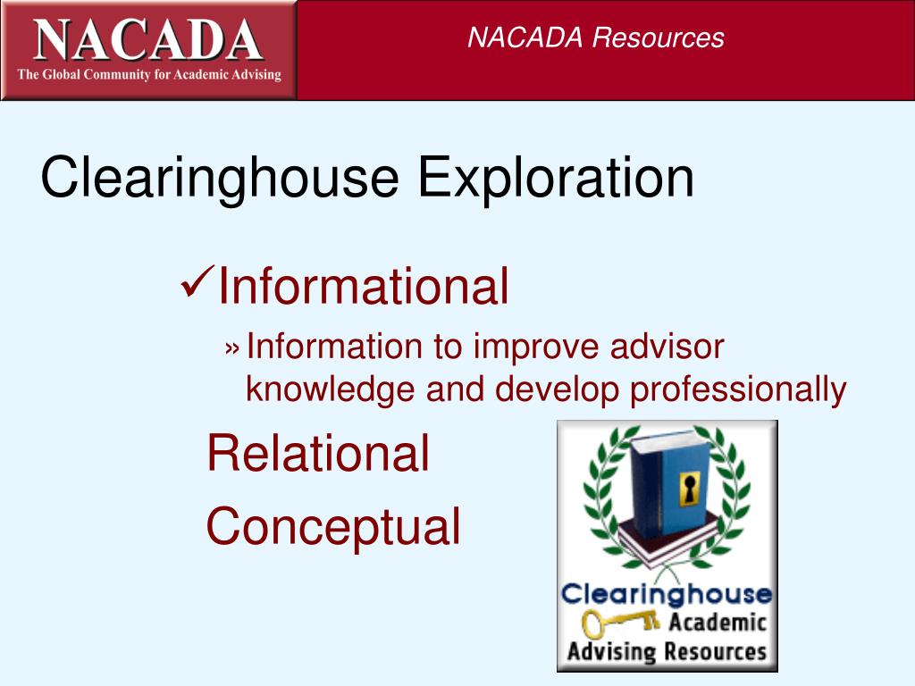 NACADA Resources Clearinghouse Exploration Informational • Relational Conceptual