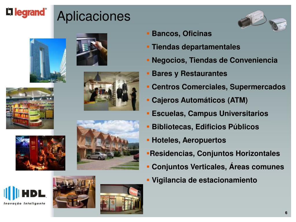 Aplicaciones • Bancos, Oficinas • Tiendas departamentales • Negocios, Tiendas de Conveniencia • Bares y Restaurantes • Centros Comerciales, Supermercados • Cajeros Automáticos (ATM) • Escuelas, Campus Universitarios • Bibliotecas, Edificios Públicos • Hoteles, Aeropuertos • Residencias, Conjuntos Horizontales • Conjuntos Verticales, Áreas comunes • Vigilancia de estacionamiento