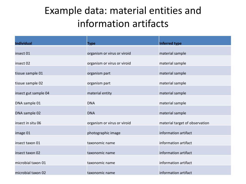 Future directions - ontological • Better integration with OBI and other ontologies • More sophisticated treatment of naming/taxonomy/identification • Ontological modeling of surveys/inventories • Mappings to DwC, MIxS, other vocabularies • Testing with real data sets