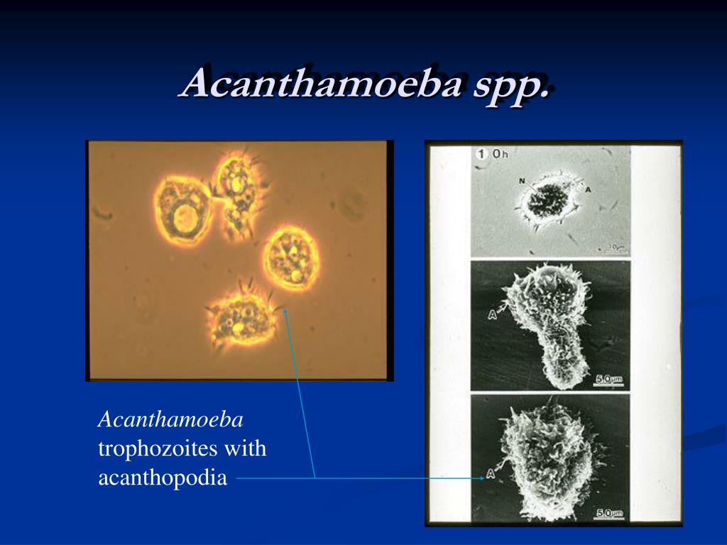 Acanthamoeba spp. Acanthamoeba trophozoites with acanthopodia