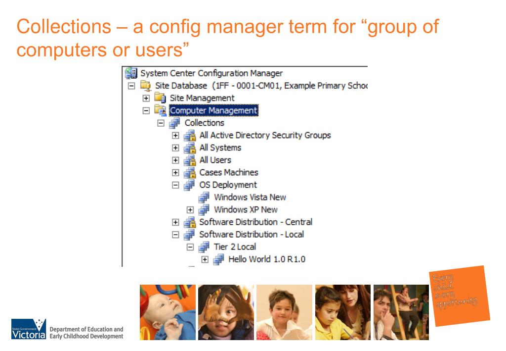 Collections – a config manager term for “group of computers or users”