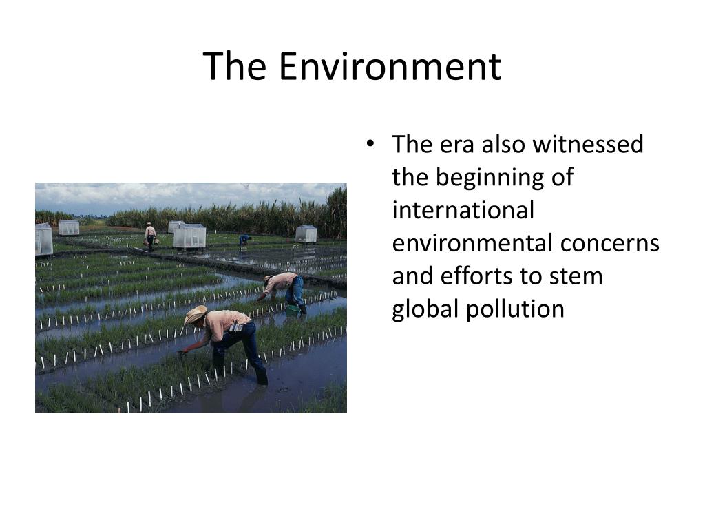The Environment • The era also witnessed the beginning of international environmental concerns and efforts to stem global pollution
