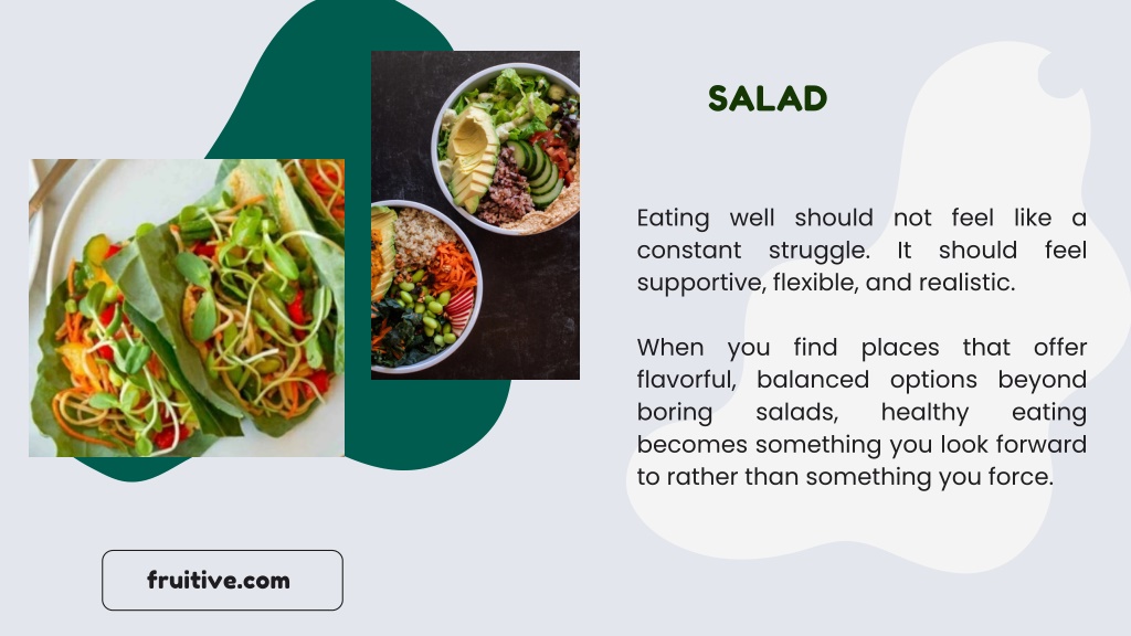 SALAD Eating well should not feel like a constant struggle. It should feel supportive, flexible, and realistic. When you find places that offer flavorful, balanced options beyond boring salads, becomes something you look forward to rather than something you force. healthy eating fruitive.com