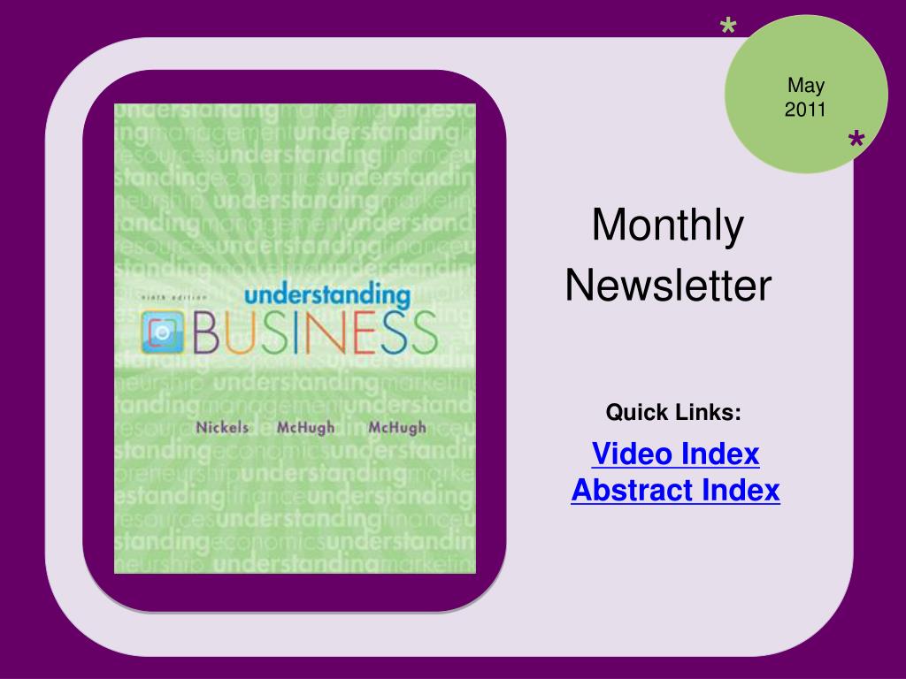 * May 2011 * Monthly Newsletter Quick Links: Video Index Abstract Index