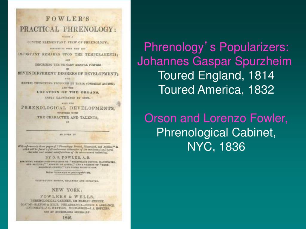 Phrenology’s Popularizers: Johannes Gaspar Spurzheim Toured England, 1814 Toured America, 1832 Orson and Lorenzo Fowler, Phrenological Cabinet, NYC, 1836
