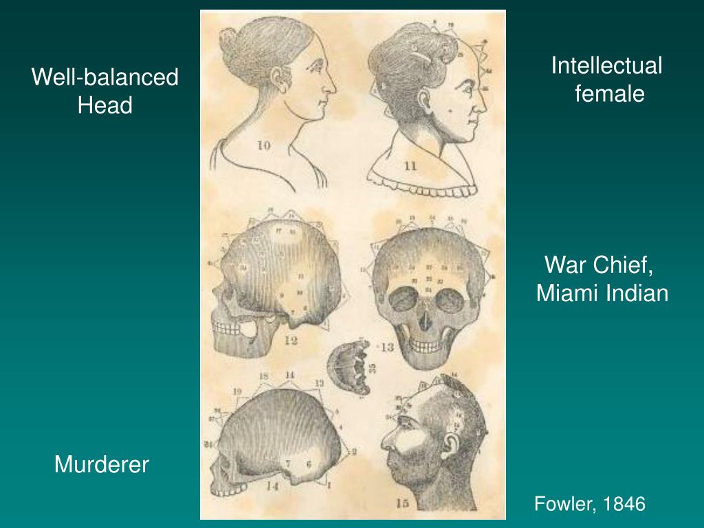 Phrenology in 19th Century Popular Culture • Reformers often cited phrenology when championing movements such as abolition, women’s rights, and temperance • Artists of the period sometimes sculpted figures to reflect phrenological ideals • Lectures, including those on phrenology, were considered popular entertainment. Orson Fowler was ranked by one newspaper as one of the top 50 lecturers in the country • ‘Help Wanted’ ads asked for phrenological recommendations; Personal ads called for mates with compatible heads • Modern phrases such as “high brow”, “low brow”, “well-rounded”, and “shrink” are believed to have phrenological roots • Women dressed their hair to emphasize best phrenological features • Slide courtesy of V. Meade-Kelly