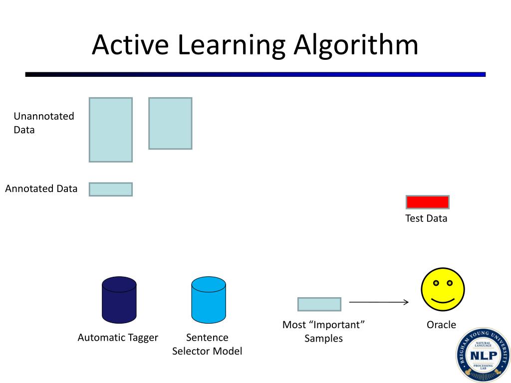 Most “Important” Samples Oracle Test Data Active Learning Algorithm Unannotated Data Annotated Data Automatic Tagger Sentence Selector Model
